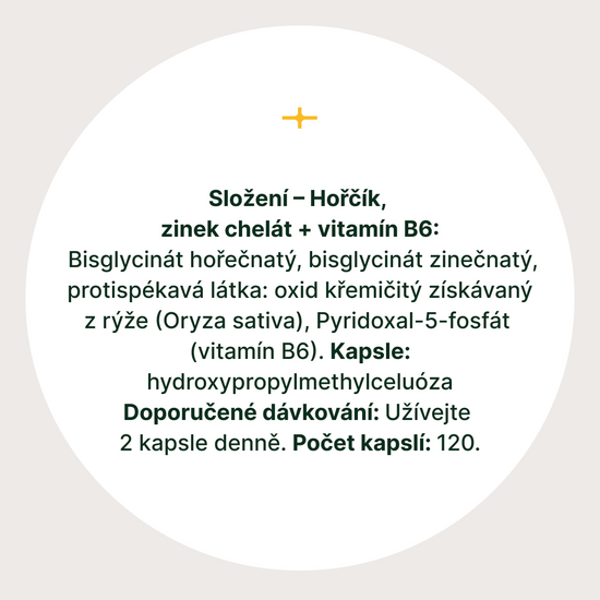 - ideální poměr hořčíku, zinku a vitamínu B6 pro poskytnutí maximálních benefitů všech obsažených prvků