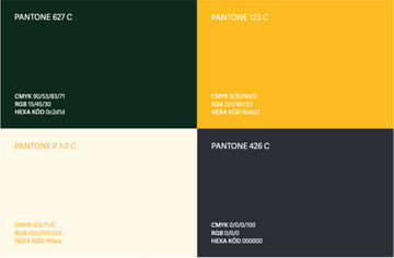 - Žlutá – HEX: #fbbb21 (PANTONE 123 C)