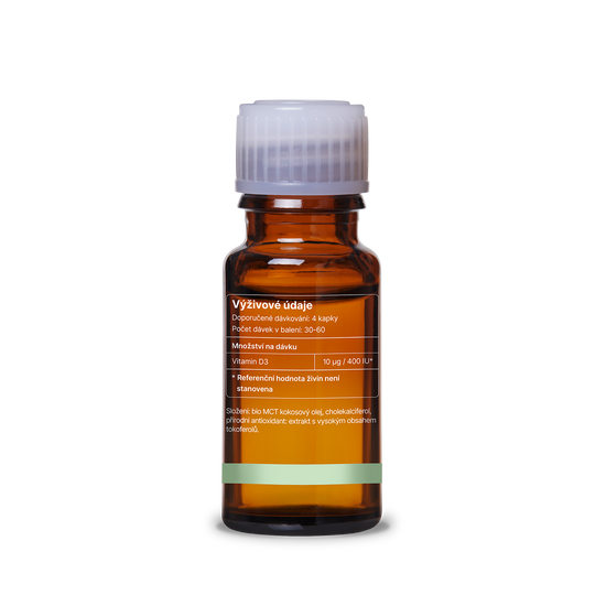 - 4 kapky = 400 IU (10 μg) vitamínu D3