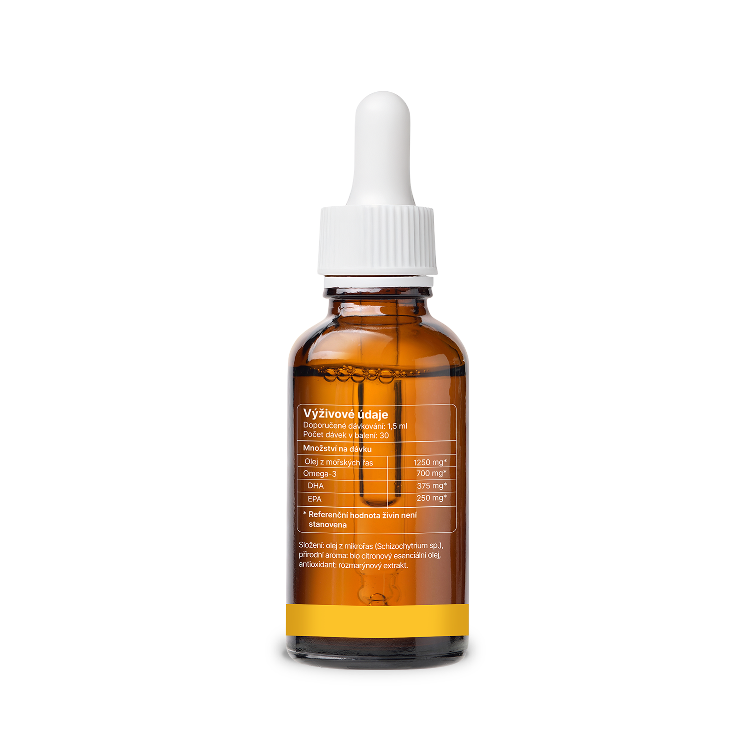 - prémiový rostlinný olej z mikrořas (Schizochytrium sp.)